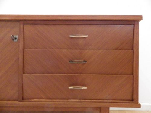 parties gauche 1 porte ouvrant sur 1 rangement 1 étagère, partie droite avec 3 tiroirs