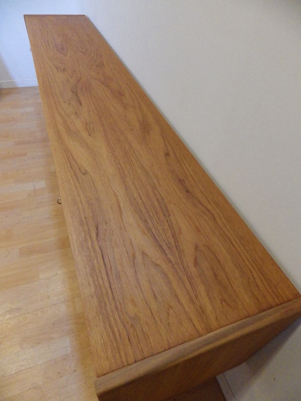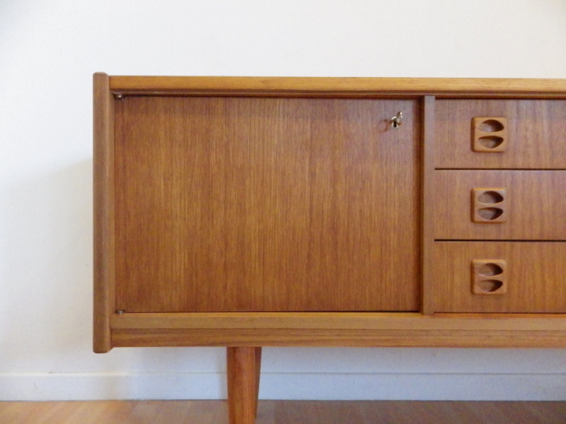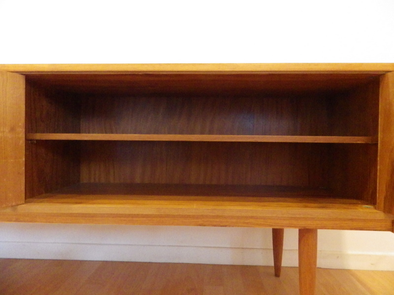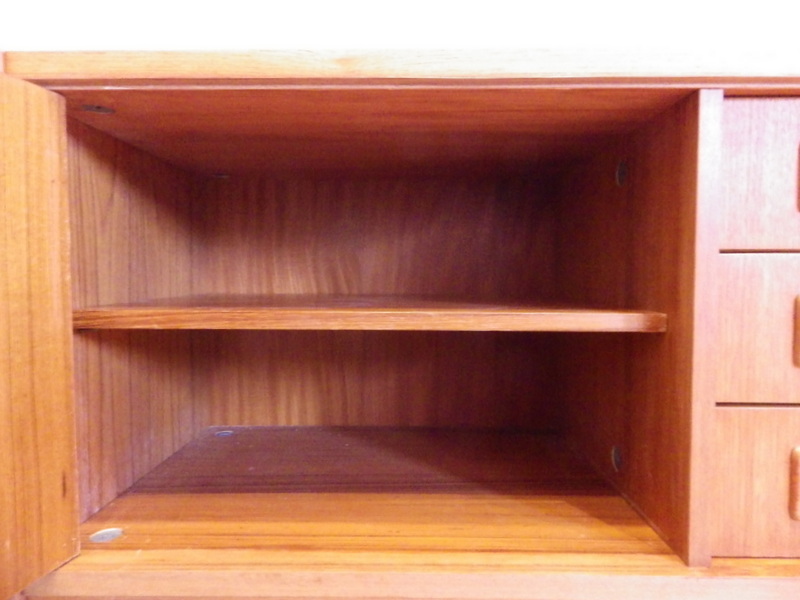 partie gauche avec 1 porte ouvrant sur 1 rangement 1 étagère, partie centrale gauche avec 3 tiroirs, partie droite avec 2 portes ouvrant sur 1 grand rangement 1 étagère