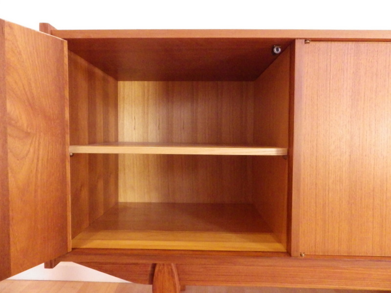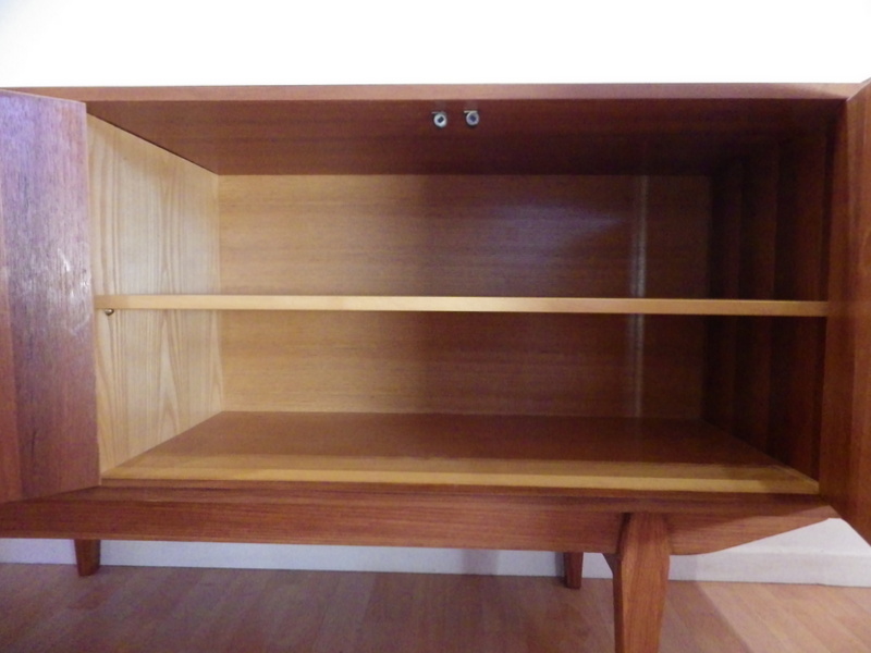 parties gauche 1 porte ouvrant sur 1 rangement 1 étagère, partie centrale et droite avec 2 portes ouvrant sur 1 grand rangement 1 étagère
